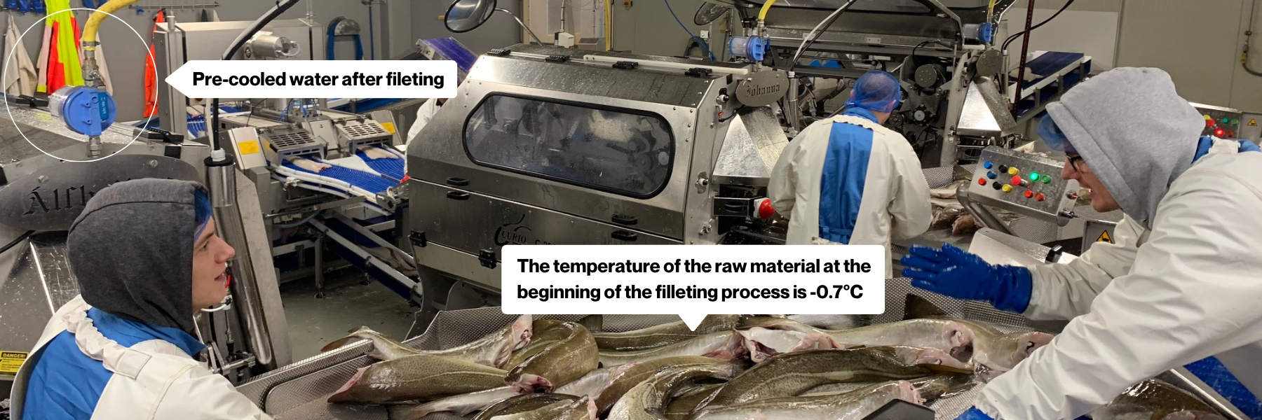 Temperature measurements were performed in a fish factory in Hellissandur where OptimICE® pre-cooling equipment is installed. OptimICE® liquid slurry ice machines are used on board the ships.