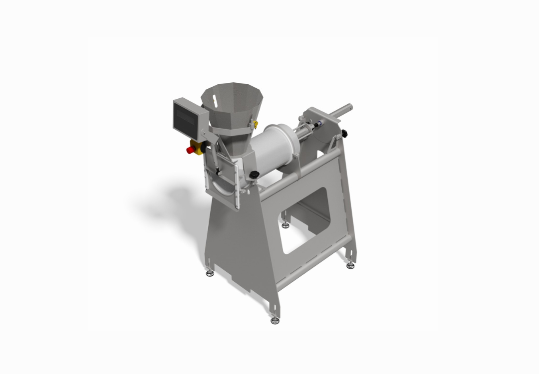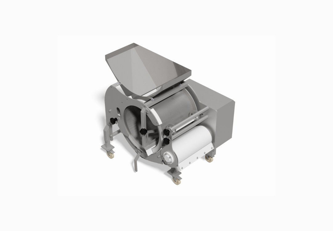 From the washing drum, all mince enters the mince press unit. The mince press ensures that all mince that is delivered out of the system contains an even amount of water. The percentage of water can be adjusted by means of adjusting the outlet end of the mince press.